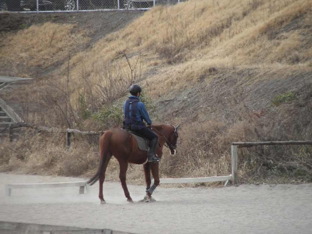 捻挫 コメントを残す 定休日の昨日治療の子(馬)達のリハビリをしていましたら、リズム君の様子がおかしい、全身チェックをしたら前足の捻挫、よくあることなのですが・・・リハビリ中止、残念。 一昨日の写真です 沢山の騎乗有難うございました。