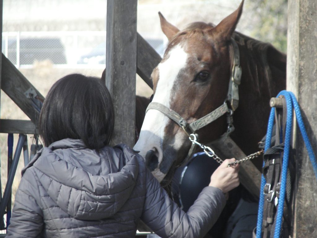 暖かい コメントを残す 昨日は春の様でした。少し動いたら汗ばむ位の暖かさでみんな(馬)もデレーとしていました、また寒くなるそうですが少しづつでも暖かくなってくれればいいですね。 昨日の写真です 沢山の騎乗有難うございました。